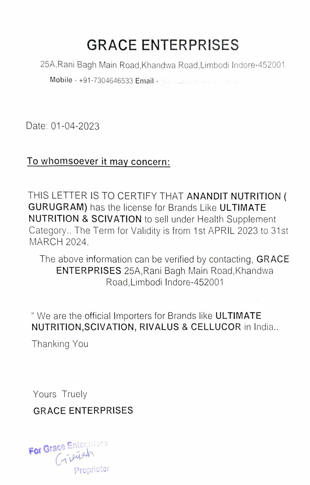 Authorized Dealership of Ultimate Nutrition & Scivation