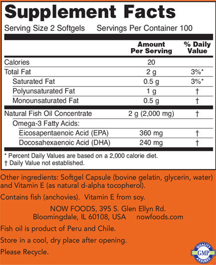 Now Foods Omega 3 Fish Oil 200 Softgel