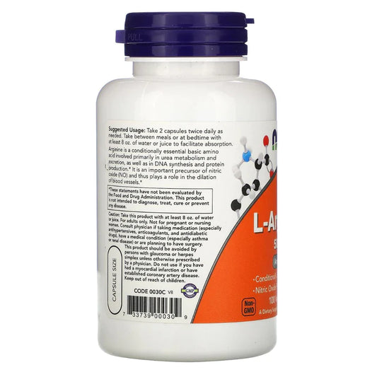 Now Foods L- Arginine 500 mg- 100 Capsules