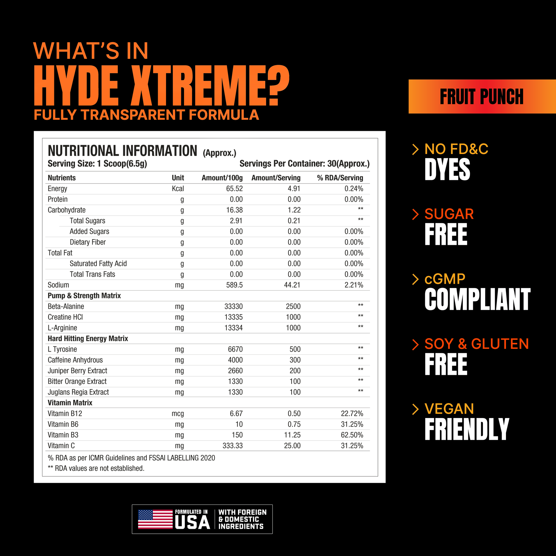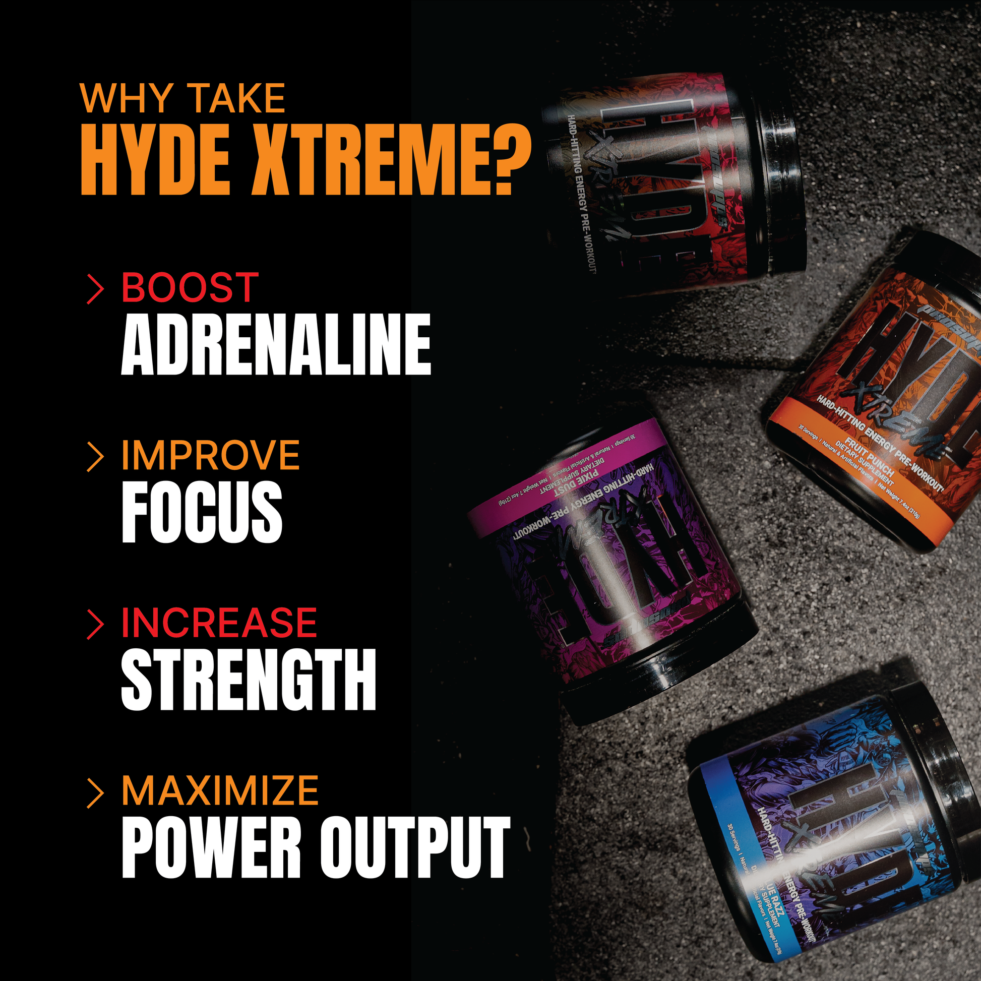 Powerful Pre-Workout Formula - Unleash your potential with Hyde Xtreme, a dynamic, power-packed pre-workout supplement engineered to peak performance.